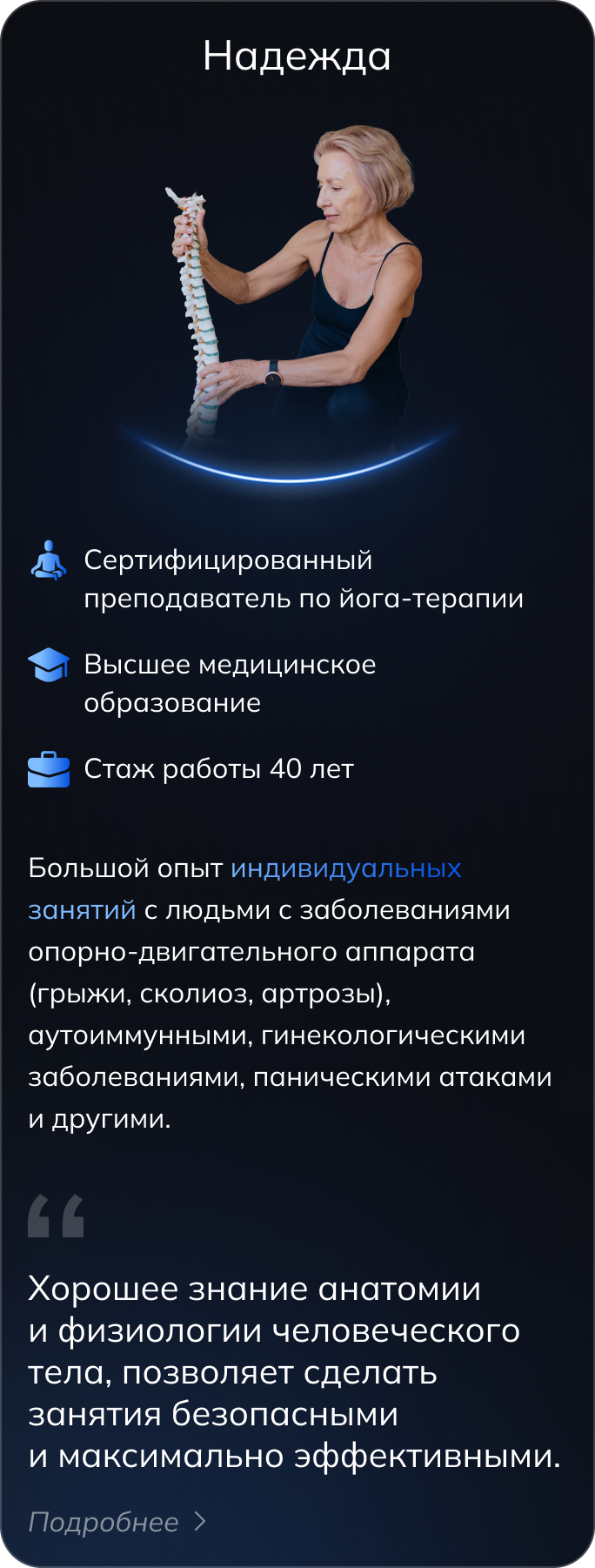 Мы не делаем ничего лишнего, а фокусируемся на самом важном от чего в первую очередь зависит здоровье и красота тела в любом возрасте.